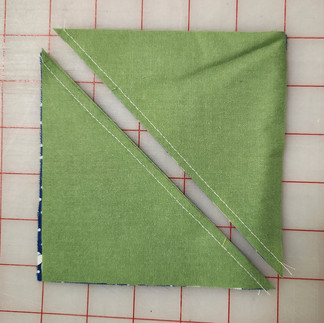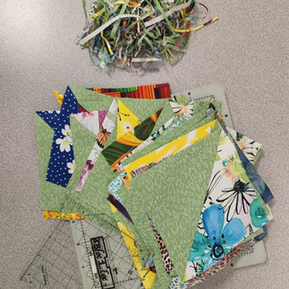 You are going to need some consistent fabric for your Background. If you are daring, your background can also be scrappy but be careful - for this block to “work”, you need to have a little break from the riot of color we have used so far. If you want to stay scrappy (including Background), make sure it all “reads” the same color. Don’t be going all color crazy with your background - you won't like the results. Cut your Background fabric(s) into 5" squares.